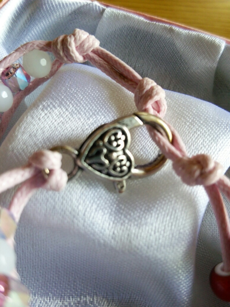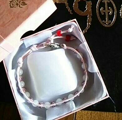 物凄くガーリーでプリティなピンクのブレスレットを選んでました。